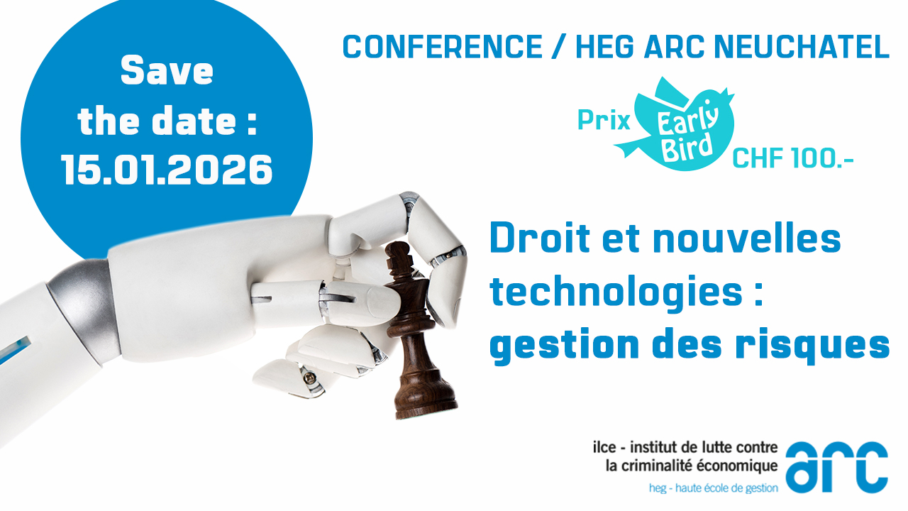 Ajouter à mon calendrier 2026-01-15 09:00 2026-01-15 16:30 Europe/Zurich Droit et Nouvelles technologies : gestion des risques Ce colloque s’insère dans le cycle des «Journées de droit et nouvelles technologies» organisées par l’ILCE. Ces journées ont pour vocation de fournir des points de vue pointus de la part de chercheurs et chercheuses, ainsi que de professionnel-le-s sur des questions d’actualité. Neuf conférences et un atelier à choix pour approfondir les impacts des nouvelles technologies – et notamment de l’intelligence artificielle – sur la gestion des risques dans le domaine juridique, bancaire, administratif et policier, ainsi qu’au sein des… HEG Arc - Neuchâtel