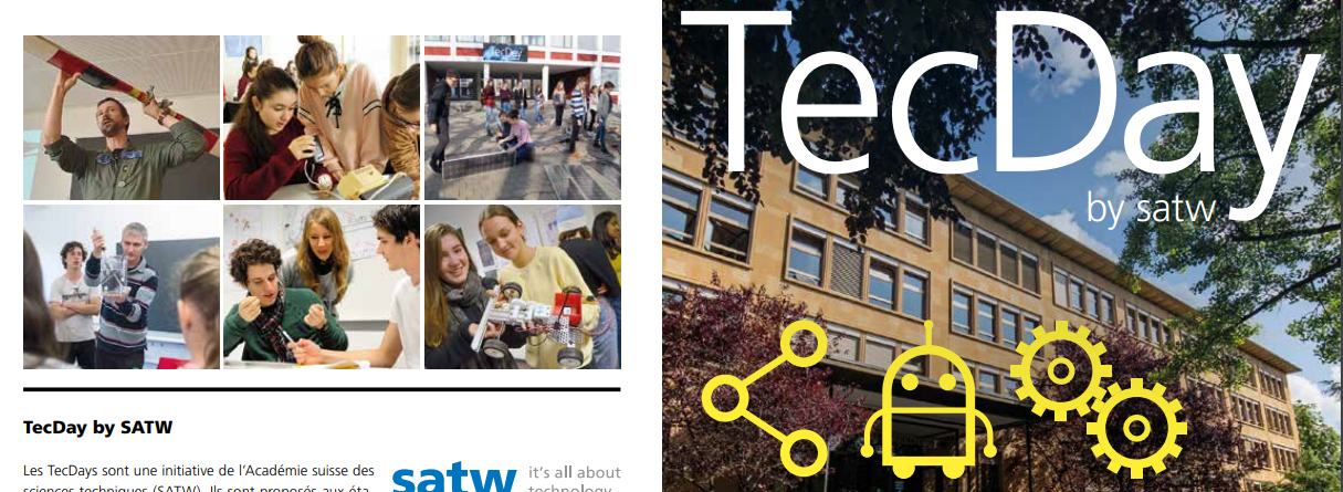 Les TecDays de la SATW, organisés depuis 2007 en collaboration avec les établissements scolaires secondaires suisses, proposent une journée dédiée aux disciplines MINT. Ces événements interactifs donnent aux élèves l’opportunité de découvrir, le temps d’une journée, l’univers de la technique en échangeant avec des professionnel·les du domaine grâce à un large choix de modules. Depuis leur création, une soixantaine d’écoles du secondaire II et 80’000 élèves y ont participé.