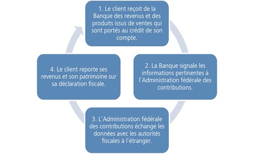 Ces informations sont ensuite échangées annuellement et de manière automatique avec les juridictions partenaires, via un canal sécurisé standardisé par l’OCDE12SwissBanking, « Échange automatique de renseignements (EAR) », Swissbanking.ch, consulté le 24 septembre 2025, https://www.swissbanking.ch/fr/themes/impots/echange-automatique-de-renseignements..