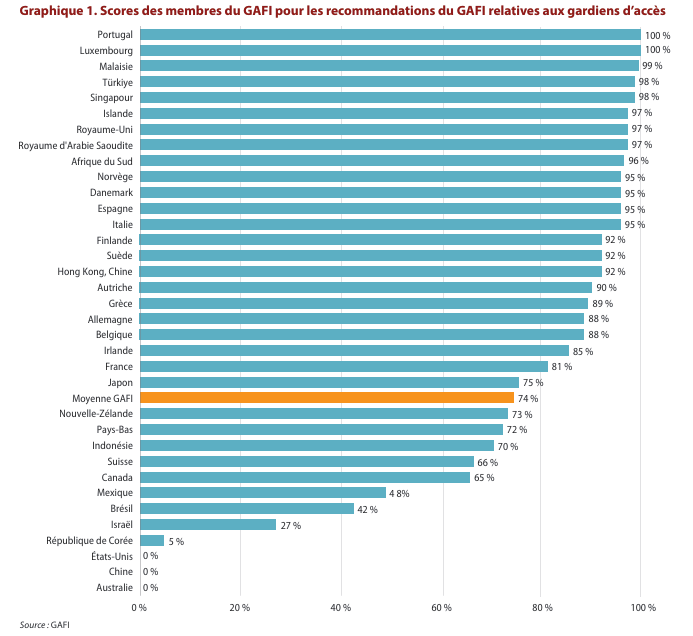 Source : GAFI. (2024). Examen horizontal de la conformité technique des gardiens d’accès en matière de corruption. Disponible à l’adresse : https://www.fatf-gafi.org/content/dam/fatf-gafi/reports/French-HRGTC.pdf.coredownload.inline.pdf [consulté le 01.08.2025].