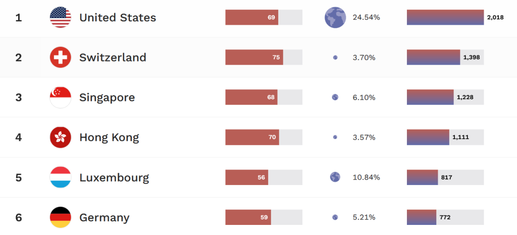 Source : Gross, D. (2025, 03.06). La Suisse reste l’une des zones les plus opaques du monde financier. Alliancesud. Disponible à l’adresse : https://www.alliancesud.ch/fr/indice-d-opacite-financiere-suisse-reste-l-une-des-zones-les-plus-opaques [consulté le 25.07.2025].