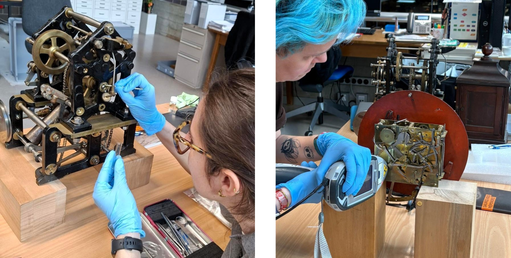 On 13 March 2026, Dr. Teresa Molina and Dr. Laura Brambilla visited our partner MIH in La Chaux-de-Fonds, to collect lubricant samples and analyse representative alloys from selected objects in the collection. The lubricants and their ageing process will be analysed soon.