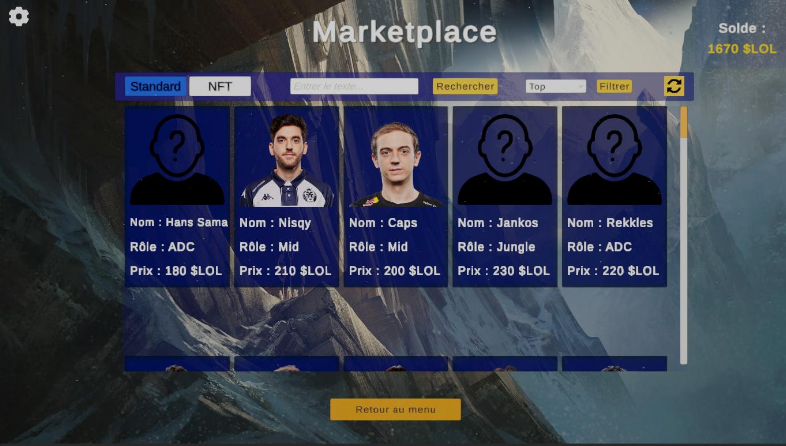 Le projet LoLManager portait sur une application desktop de gestion d’équipe e-sport développée sous Unity (v6000.0.38f1), interfacée avec la blockchain Ethereum via le testnet Sepolia.