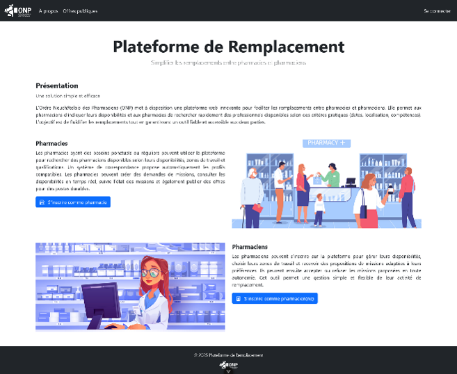 Ce besoin opérationnel a motivé la création d’une plateforme numérique dédiée à la mise en relation entre pharmaciens disponibles et établissements de santé.