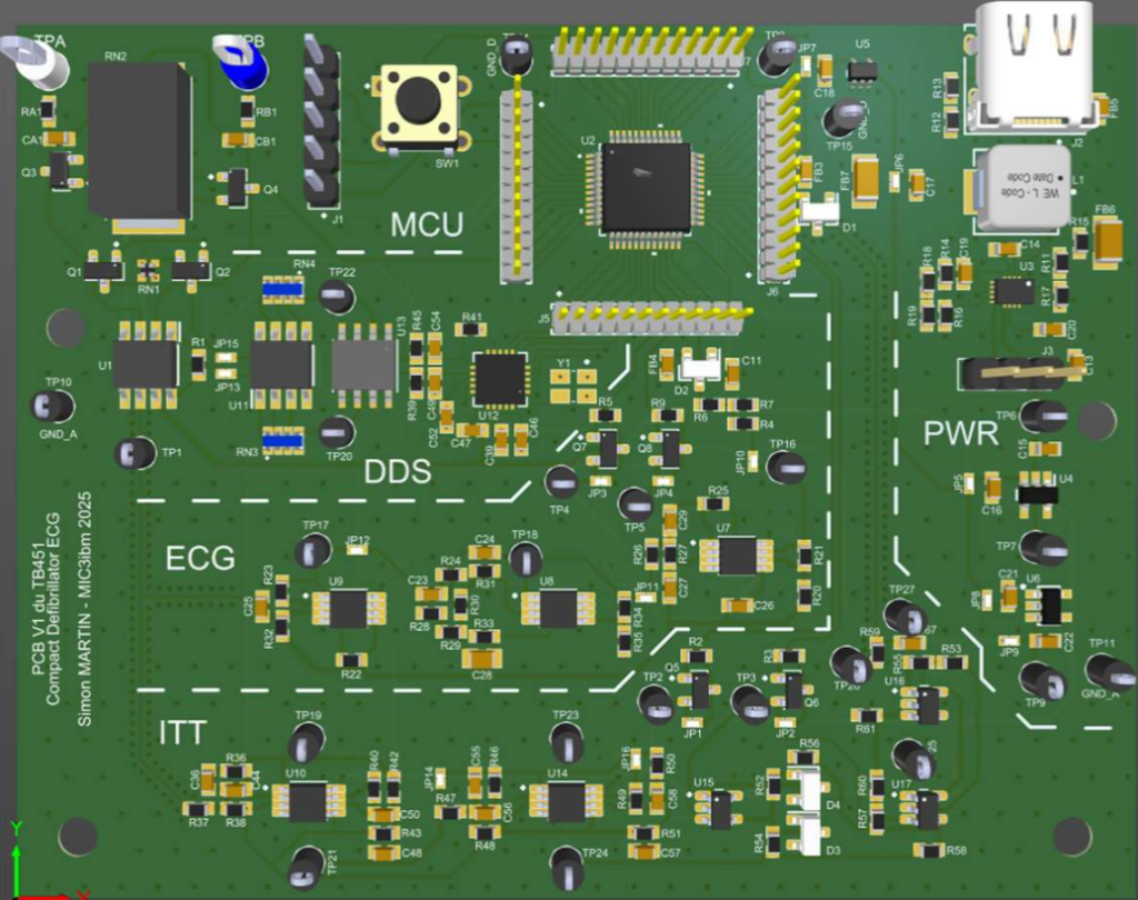 La méthode a consisté à dimensionner, simuler et implémenter des chaînes analogiques d’amplification, de filtrage et de conditionnement sur un PCB.