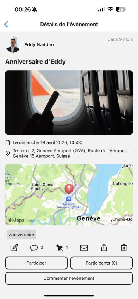L’application propose notamment l’affichage d’une timeline personnalisée, une recherche multicritère, la gestion des invitations, la possibilité de commenter les événements, le suivi d’utilisateurs et de sujets, ainsi qu’un système de suggestions.