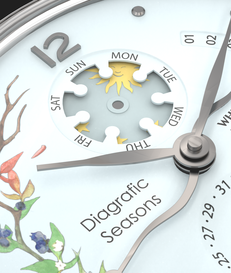 L’objectif était d’explorer une lecture du temps poétique en intégrant une complication rétrograde inédite illustrant les saisons et les mois.